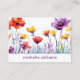 Traga um toque de natureza e elegância para sua presença profissional com este cartão de visita maravilhosamente projetado. Apresentando uma ilustração em estilo aquarela de flores silvestres botânicas, este design oferece uma aparência nova e artística com charme de eterno. Perfeito para criativos, proprietários de pequenas empresas, freelancers, ou qualquer um que ame flores e beleza natural. Totalmente personalizável com seu nome, título e informações de contato no verso.