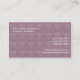 Simples e elegante é a maneira de ir. Um ornamento clássico da flor de lis na cor cor-de-rosa empoeirada escura serve como o ponto de foco deste cartão de visita apropriado para uma variedade de profissões que incluem serviços financeiros, bens imobiliários, publicação, consultanting, etc. A flor de lis é repetida em um teste padrão na parte traseira. Disponível em cores alternativas.