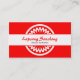 Um modelo de cartão de negócios na moda com um motivo de flor geométrico circular e uma banda branca. O tema continua nas costas com uma área maior para detalhes de contato, mas mantém parte do motivo principal no cabeçalho. Embora esta versão tenha sido feita tendo em mente um restaurante indiano ou chinês, pode ser adaptada a muitos tipos de negócios.