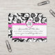 Vintage Damask Black and White com Convites de Corte Rosa Quente, Inserir Cartões e Gráficos de Destino