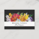 Estes cartões de visitas maravilhosos apresentam um design floral pintado moderno e colorido em vermelho, amarelo, roxo, azul, rosa e verde. As cores de fundo e texto podem ser personalizadas para qualquer cor que você quiser! Seu texto personalizado se destaca em uma faixa branca. Várias modelos de texto são incluídas no verso para mais personalização!