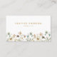 Cartão de visita Floral de Aquarela. Chic & Na moda, este belo cartão de visita floral apresenta impressionante cor d'água, cor rosa pincelada manualmente, azul empoeirado, e delicado e amarelo brilhante flores silvestres vintagares prensadas com botânicos verdes sábios.