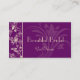 Este design de cartão de visita é certo atrair a atenção e ajudá-lo a estar para fora na multidão. O fundo é ameixa roxa e há um gráfico floral bonito no creme que dá lhe um olhar elegante. Aperfeiçoe para todo o negócio mas especialmente excelente para o salão de beleza nupcial, planeamento wedding, planeamento do evento, restauração, salão de beleza do prego, termas, jóia, cosmetologist, forma, consultante de beleza, ou quando você gostaria de um toque elegante. Adicione sua informação e está pronto para ir!