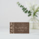 Este design de cartão de visita é certo atrair a atenção e ajudá-lo a estar para fora na multidão. O fundo é castanho chocolate e há um gráfico floral bonito no champange de creme dando lhe um olhar elegante. Aperfeiçoe para todo o negócio mas especialmente excelente para o salão de beleza nupcial, planeamento wedding, planeamento do evento, restauração, salão de beleza do prego, termas, jóia, cosmetologist, forma, consultante de beleza, ou quando você gostaria de um toque elegante. Adicione sua informação e está pronto para ir!