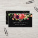 As flores, as penas e a folha boémias do estilo da aguarela elegante em máscaras chiques do roxo, da Borgonha, do rosa, do pêssego e do verde com acentos geométricos do ouro suportam sobre, cartões de visitas. A cor do fundo, mostrada no preto, pode ser personalizada.