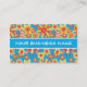Um bonito cartão de visita para muitos tipos de negócios, com um padrão de flores vermelhas, laranja, amarelas em um fundo turquesa brilhante, de uma colagem de papel pintada à mão por Judy Adamson. Totalmente e facilmente personalizável.
