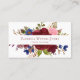 Uma adorável aquarela floral em tons de marsala, azul-marinho e quadros cor-de-rosa com o nome e o título de um serifa de aparência vintage em marsala clara. O nome e o título são repetidos no verso em texto branco sobre fundo de marsala claro, com espaço para contatos adicionais, como URL do sítio, endereço, correio eletrônico e/ou número de telefone.