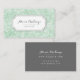 Barato de cartões de visitas impressos personalizados com modelos simples para personalização. Use as ferramentas de design para adicionar seu nome comercial e informações de contato. Edite as fontes e cores do texto ou carregue seu logotipo e fotos para criar um cartão de visita personalizado exclusivo ou design de cartão de chamada. Este bonito design feminino apresenta um sutil fundo floral vintage em cores pastel verde e cinzas de carvão.