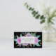 Cartões de visitas dramticamente elegantes apresentam um buquê de flores silvestres pintadas com aquarelas impressas em papel preto rico. O seu nome e título ou profissão são apresentados no centro em caracteres modernos num elemento retangular branco. Adicione os detalhes de contato do seu cheio, incluindo links ou identificadores de mídia social, ao lado inverso. Uma escolha chic para artistas maquiadores, estilistas e muito mais.