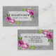Cartão De Visita Flores da peônia da aguarela na madeira cinzenta