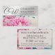 Este cartão de visita apresenta uma imagem de estilo aquarela de flores cor-de-rosa na parte inferior. A parte superior da placa apresenta um fundo prateado brilhante, parecido com metal. Duas iniciais de amostra são impressas em uma cinza escura elegante à esquerda com o nome do cheio impresso à direita das iniciais, seguido do título do trabalho. Você pode personalizar a cartão de visita para incluir todas as suas próprias informações. A parte traseira da placa apresenta a mesma imagem de flor de aquarela impressa ao longo das bordas. Uma caixa de texto colorido com creme contém todas as informações comerciais ou da empresa, incluindo as informações de localização e contato da empresa.
