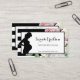 Na moda e cartão de visita de parto para a doula profissional de nascimento que inclui uma listra na moda a preto e branco e uma cartão de visita floral cor-de-rosa com uma elegante silhueta de uma mulher grávida. Personalize acrescentando o nome do treinador de parto ou parteira e informações de contato.