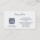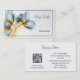 Este cartão de visita profissional único apresenta uma flor de ouro azul e turquesa, eetéreo e transparente, em forma azul. Elegante design para maquiadores, spa, planejadores de casamento, planejadores de eventos, cosmetólogos, salão de beleza... com um código qr digitalizável nas costas.