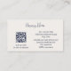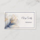 Este cartão de visita profissional único apresenta uma flor de ouro azul transparente e etéreo em um quadro azul. Elegante design para maquiadores, spa, planejadores de casamento, planejadores de eventos, cosmetólogos, salão de beleza... com um código qr digitalizável nas costas.