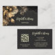 Flores ouros estéticas sobre fundo preto com um elegante roteiro manuscrito. Perfeito para maquiagem, beleza, salão, cabelos e maquiagem, floristas...