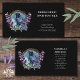 Cartão de visita horizontal. Design metafísico com bela aquarela de corvo mágico, flores roxas, cristais azuis e coroa com estrelas. Esta design é perfeita para curandeiros holísticos, massagistas, praticantes de reiki, instrutores de ioga, e qualquer pessoa no negócio espiritual e metafísico. Adicione um toque mágico à sua empresa, clínica ou spa. Ofertas de negócio iguais para o seu negócio espiritual disponível na nossa loja Zazzle.