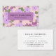 Cartões de visitas elegantes, na moda e sofisticados com flores roxas. Design moderno e moderno, perfeito para floristas, compro de flores e entregas florais.