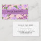 Cartões de visitas elegantes, na moda e sofisticados com flores roxas. Design moderno e moderno, perfeito para floristas, compro de flores e entregas florais.