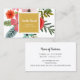Um novo cartão de visita floral perfeito para um consultor de beleza com uma caixa quadrada amarela ouro à qual você pode adicionar seu nome e título. Personalize adicionando suas informações de contato à parte traseira.