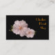 Este cartão de visita floral que anuncia uma loja de florista caracteriza duas flores de cerejeira rosas pálido requintados com gotas da água de uma chuva recente banhada em um light.set de incandescência rosado em um fundo preto puro. Mais flores estão na parte traseira. Todo o texto pode ser personalizado para caber seu próprio assunto pessoal.