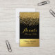 Preto e cartão de visita do ouro com o brilho dourado glamoroso que cai em um fundo preto. Grande cartão para maquilhadores, profissionais do salão de beleza ou qualquer um que gosta de um cartão de visita dramático. Para perguntas & pedidos feitos sob encomenda, envie por correio electrónico o desenhista em: cheryl@cheryldanielsart.com. Do "confetes brilho" pelo © 2015 de Cheryl Daniels.