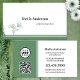 Cartão de visita simples com um design de folha verde sobre fundo branco. No verso está espaço para o seu próprio logotipo e código QR personalizado. Excelente para arquiteto paisagista, jardineiro, desenhador de jardins ou empresa que presta serviços de manutenção de jardins.