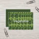 Cartão de visita de Padrão Vegetal de Folha Verde. Totalmente personalizável. Personalize com seus detalhes. Este Cartão de visita de padrão vegetal de folha verde é uma forma única e atraente de representar sua empresa. O cartão apresenta um padrão vibrante de vários vegetais verdes com folhas, como espinafres. Os detalhes intrincados e cores vívidas dos vegetais criam um design visualmente atraente que fará seu cartão de visita se destacar do resto. O padrão verde de folha vegetal adiciona um toque de frescura e natureza à sua marca comercial, fazer-o perfeito para as empresas nas indústrias de saúde e bem-estar, comidas orgânicas ou jardinagem. Quer você queira promover seus hábitos alimentares saudáveis, mostrar seu compromisso com a sustentabilidade, ou simplesmente adicionar um toque da natureza à sua empresa, este Cartão de visita de padrão vegetal de folha verde é uma escolha perfeita.