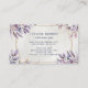 Elevem sua imagem profissional com este elegante cartão de visita botânico roxo e ouro. A design apresenta um arranjo luxuoso de folhas de aquarela macia em tons de lavanda, ameixa e lilás, acentuado por uma delicada estrutura geométrica dourada. Perfeito para cabeleireiros, maquiadores, ou profissionais de beleza, esta carta exude sofisticação e criatividade. A design de trás destaca seu nome e título em um roteiro elegante, garantindo que sua marca deixe uma impressão duradoura.