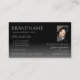 Faça uma impressão duradoura com este design cartão de visita moderno e elegante com fontes na moda com efeito espelho sobre fundo prateado. O lado de trás é um gradiente preto chic. Personalize facilmente este cartão de visita para a sua marca e para a fotografia dos seus funcionários. ♡ SEU FAVORITO - Designer:-) Material comercial de luxo e profissionais. ♡ muito prazer com este ponto. ♡ www.zazzle.com/store/your_favorite ♡ www.zazzle.com/store/favorite_markeplies ♡