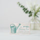 Pote molhando e pá antigos no vermelho com um fundo velho textured do efeito de parede. Cartões de visitas elegantes do estilo do vintage para a loja de florista, jardineiro, desenhista da paisagem. De uma gravura antiga.