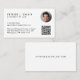 Cartão de visita profissional mínima e elegante, com a sua fotografia num pequeno círculo, o seu nome, título e informações de contato (como correio eletrônico, números de telefone, nome firme e endereço de correio eletrônico) em tipografia simples, moderna e limpa. Insira um endereço de URL para criar um código de QR digitalizável vinculado ao seu site, perfis de mídia social ou qualquer outra plataforma que mostre seu trabalho, fazer fácil para outros explorarem sua experiência. No verso, personalize o texto adicional ou deixe o vazio.