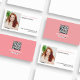 Um simples design apresenta um modelo de cartão de negócios de código QR, com uma fotografia simples, e um estilo profissional moderno, com um código de barras digitalizável para um site ou mídia social, como Instagram e Facebook, um design de chic minimalista e moderado, com detalhes mínimos de contato, e um fundo cor-de-rosa limpo no verso, um cartão de visita de texto de fotografia.