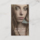 Um cartão de visita de fotógrafo moderno com tipografia elegante em serifa, uma foto elegante, e mídia social e código QR nas costas.