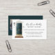 Entrada da porta da frente de cor aquosa e na moda verde-aquática com uma porta acolhida, fixação de luz preta, plantador tropical e sotaques de tijolos. cartão de visita de na moda para uma grande variedade de empresas, como agente imobiliário, preparação doméstica, designer interior/exterior, limpeza doméstica, pintor, gerente de propriedades e muito mais! Personalize com o nome da empresa e entre em contato com as informações na frente. Design simples e mínima com o nome da empresa e o texto opcional, como endereço do site e opção de exibição de fotos. Todas as ilustrações são obras de arte originais pintadas manualmente pela Moodthology.