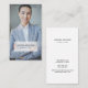 A frente do cartão de visita apresenta um layout de foto vertical completo com uma simples placa de nome branca que apresenta o nome da empresa. O verso apresenta as informações de contato e o nome da empresa em um layout limpo e minimalista. Você pode personalizar o tamanho do texto, a fonte, as cores e a cor de fundo para se adequar às suas preferências pessoais.