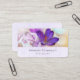 Cartões de visitas com uma fotografia adorável de um vidro de dentro de vidro roxo escuro. Uma flor roxa leve está presente no fundo.