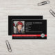 Este design apresenta um tema de bandeira de bombeiro com uma faixa vermelha fina. Personalize com o nome, a posição e as informações de contato do bombeiro, capitão, chefe ou qualquer funcionário que trabalhe no departamento de bombeiros. O fundo branco sólido no verso permite um espaço extra para um bombeiro escrever uma pequena nota, se necessário.