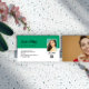 Cartão de visita branco, preto e verde para qualquer profissão com seu código QR, foto do perfil e, no verso, outra foto. Cartão de visita do criador de conteúdo com um encantador script de pincel, cor verde de sotaque e seu código QR.