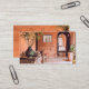 Um na moda moderno cartão de visita de designer de interiores com um interior exótico. Você deve substituir esta foto por uma foto vertical própria. Adicione uma foto de um espaço interior, ou simplesmente uma foto de si mesmo em um formato vertical. Personalize com suas informações na parte traseira da placa. Faça seu cartão se destacar com um interior atraente.