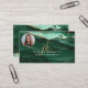 Cartão de visita com agato verde e mármore moderno, na moda profissional, com veias de brilho dourado falso e sotaques de brilho personalizados com iniciais de monograma manuscrito de rico com balsas e nome e sua foto. ASSISTÊNCIA: Para obter ajuda sobre modificação ou personalização do design ou se você quiser coordenar itens, entre em contato com o designer ANTES DE ENCOMENDAR, por meio da guia MENSAGEM de Bate-papo Zazzle ou por e-mail makeitaboutyoustore@gmail.com.