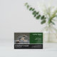 Um modelo de cartão de negócios com um rodapé preto de borda branca com a área superior mascarada com um painel de fotos e texto. Foto ou imagem de trabalho artístico à esquerda (que também pode ser substituída por sua própria foto) com um painel para nome e detalhes à direita. Espaço para o nome da empresa à esquerda do rodapé com detalhes de contato por telefone, Web e e-mail à esquerda. Também pode ser personalizado para outros usos. NB: a área de fotos está mascarada, se você estiver substituindo a imagem, talvez seja necessário ajustar o tamanho da foto.