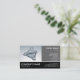 Um modelo de cartão de negócios com um rodapé preto de borda branca com a área superior mascarada com um painel de fotos e texto. Foto ou imagem de trabalho artístico à esquerda (que também pode ser substituída por sua própria foto) com um painel para nome e detalhes à direita. Espaço para o nome da empresa à esquerda do rodapé com detalhes de contato por telefone, Web e e-mail à esquerda. Também pode ser personalizado para outros usos. NB: a área de fotos está mascarada, se você estiver substituindo a imagem, talvez seja necessário ajustar o tamanho da foto.