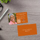 Um fundo cor de laranja queimado por uma tendência. Personalize e adicione sua foto, nome, título e informações de contato. Adicione o URL/link do seu site ao código Qr. Com ícones do Facebook e Instagram. Texto branco.
