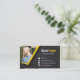 Estes moderno, na moda e cartão de visita legal usam uma paleta de cor de preto, do branco e do amarelo. Preto e branco faz-lhe o profissional e o eterno quando os toques do amarelo que incluem o tiquetaque amarelo derem um sentido da energia e da positividade que é tão necessária para o treinamento da malhação. O fundo preto tem-lhe uma textura áspera subtil. Aperfeiçoe para instrutores, instrutores da malhação e qualquer um pessoais freelance na indústria da malhação que deseja comunicar estas qualidades a seus clientes. Espaço para a personalização da foto que adiciona à credibilidade e à conexão pessoal com os clientes potenciais.