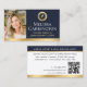Cartão De Visita Foto Pública Elegante QR Dourado Azul Escuro