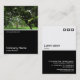 Um design modelo de cartão de negócios com uma metade inferior preta de borda branca. O design frontal inclui uma foto ou um trabalho de arte na metade superior. O mesmo tema é repetido no verso sem a imagem, permitindo espaço para outros detalhes e mais personalização. O motivo dos três quadrados usado como elemento decorativo no verso é de uma das fontes de imagem úteis de Zazzle e pode ser usado como recurso decorativo ou substituído por seu próprio logotipo ou decoração.