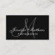 Monograma simples e elegante de cinza em uma cor preta de fundo com o nome da empresa em branco, a fonte do script é totalmente personalizável. Use campos de modelo ou, para obter mais opções, selecione "personalizar" para personalizar seu Cartão de visita de fotografia personalizado. Elke Clarke ©. Cartão de visita de Fotografia do Monograma de Script Elegante Minimalista