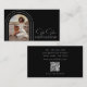 Na moda Modern Script Photo QR Code Fotografia Código QR Cartões de visitas fotógrafos apresentam um script de ouro e elegante com seus arcos favoritos de dentro prata com detalhes de sua empresa e seu site de negócios personalizado Código QR no verso. No verso estão os seus contatos personalizados. Concebido por © Evco Studio www.zazzle.com/store/evcostudio
