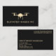 Um cartão de visita mínimo adequado para um fotógrafo piloto de aviões não tripulados. O design de na moda moderno apresenta um logotipo de drone dourado na frente com um fundo preto e um espaço para o seu nome comercial. No verso do seu nome, entre em contato com as informações e com a opção de adicionar um slogan ou serviços oferecidos.