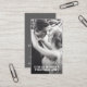 Cartão de visita moderno com seu nome em letras brancas em negrito na parte inferior, sobre sua foto vertical favorita. A parte traseira é cinza com as informações de contato em branco na metade inferior da placa. Esta design é perfeita para um fotógrafo.